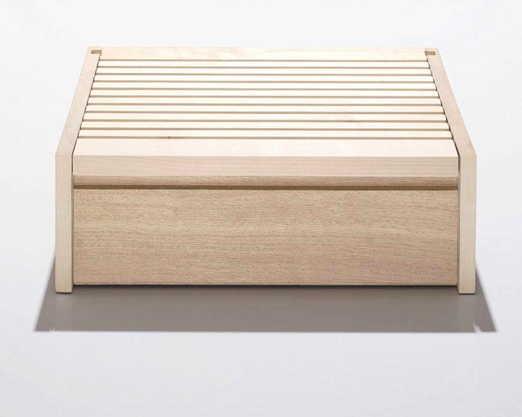 Der Brotkasten aus Ahorn und Eiche wurde von Andreas Ulbricht entworfen und ist mittlerweile ein Klassiker von Side-by-Side. Der Kasten aus unbehandeltem Vollholz ist absolut durchdacht: Durch den Verzicht auf Öl, Lack, Wachs oder andere Beschichtungen ist die Brotbox absolut lebensmittelecht. Wusstet Ihr, dass unbehandeltes Holz sogar keimmindernde Eigenschaften hat?