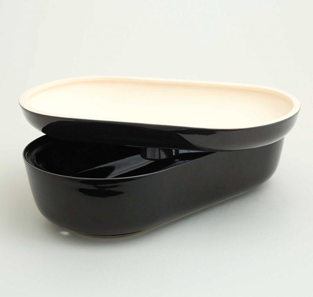 Der keramische Topf aus Österreichischen Manufakturen ist in verschiedenen Farben und Größen erhältlich. Der Topf orientiert sich an der länglich-runden Grundform von Brotlaiben und kommt ganz schlicht und selbstverständlich daher. Die edlen Glasuren, welche bei fast 1000 Grad gebrannt werden, liefern tolle Farben und machen den Topf pflegeleicht. Durch die keramische Beschichtung kann der Topf feucht ausgewischt oder gespült werden, am besten mit etwas Essigwasser, um Keime zu entfernen.